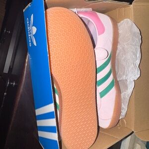 Stylish Adidas sneakers with pastel pink and green accents. Perfect for everyday wear. Youth size 6.5 but fit women’s 8