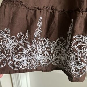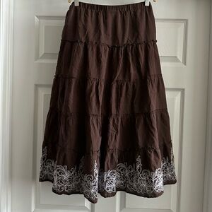 Vintage Metro Wear Maxi Skirt Fairy Embroidered Floral White Cotton Brown Flowy