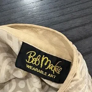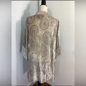 VTG BOB MACKIE WEARABLE ART LARGE BEIGE SILVER PAISLEY BURNOUT VELOUR TUNIC RARE