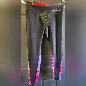 Brand New with tags still on them Fitwear black and multi color leggings they will go with just about any kind or color shirt. These leggings are a true size small. These leggings also have pocket in the back on the waist line.