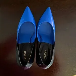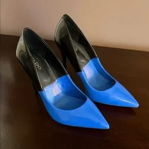 Elevate your look with Aldo's striking black and blue heels. Perfect for a bold statement. Colorblock heels, size 6.5, new without box.