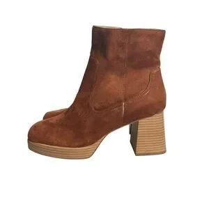 Platform Block Heel Square Toe Faux Suede Ankle Boots Women’s Size 11