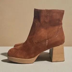 BP Keyla Platform Block Heel Square Toe Faux Suede Ankle Boots Women’s Size 11