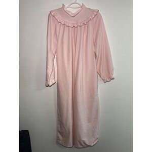Keywords: nightgown, fleece, loungewear, robe, zipper front, long sleeve, floral embroidery, pink, cozy, winter, sleepwear, vintage, made in usa
