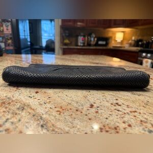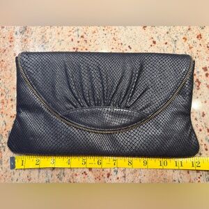 LAUREN MERKIN BLACK SNAKESKIN EMBOSSED LEATHER CLUTCH