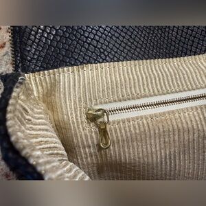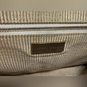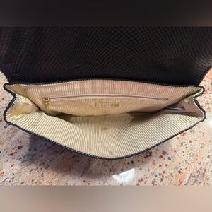 Lauren Merkin black Snakeskin embossed leather clutch. Good condition. Some stains on inner lining of purse. No rips, holes, stains or odors. Please see photos for item details/dimensions. Some photos may appear different in color due to lighting. Ships from smoke-free home.