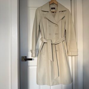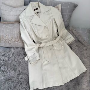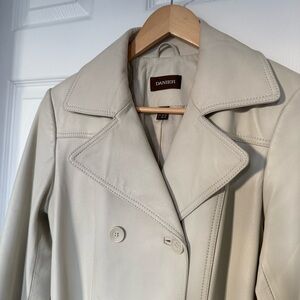 Danier Cream Double-Breasted Leather Trench Coat