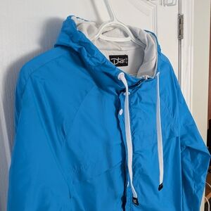 Dtox Blue Hooded Windbreaker retro vibe Jacket White Trim Size Medium