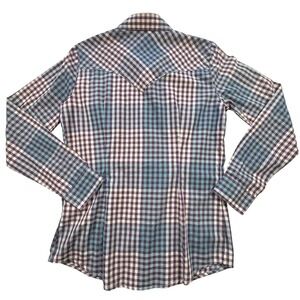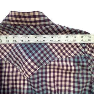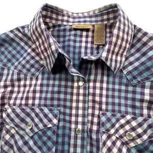 Wrangler Western Shirt Womens Small Purple Teal Plaid Pearl Snap Retro Cowgirl