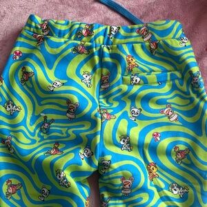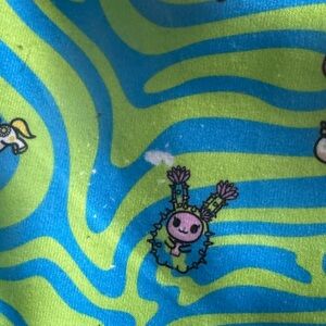 Vibrant joggers with playful tokidoki characters. Features a blue and green swirl pattern. Comfortable and stylish. I never had a chance to wear these bc they are made very small. They are a size small but they would probably fit an xs better! They were washed once and unfortunately have a small white spot on the back. They have 2 front side pockets and one back pocket. I have the hoodie that goes with it if interested in the whole set comment and I’ll add pictures for you! Smoke free home!