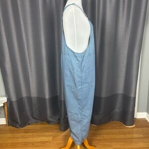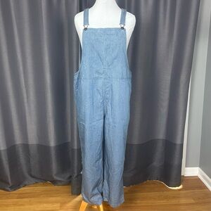 Aerie Blue White Striped Denim Overalls XL