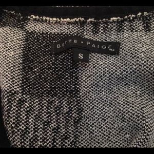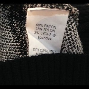Vintage Bette Paige black and white sleeveless sweater with clear shimmery sequins. In excellent preowned condition. Shoulder to hem measures 17 1/2 inches long. Rayon/Lycra blend. Dry clean only. Size Small.