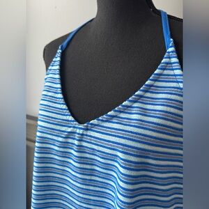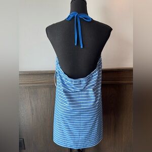 No Boundaries Blue and Gray Striped Terrycloth halter dress beach coverup NWT L