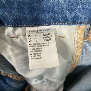 Gently worn women’s size 4 American Eagle outfitters medium wash curvy mom jeans. Medium-high Rise, distressed features, Comes from a smoke free home, bundle with other items to save & minimize shipping cost.