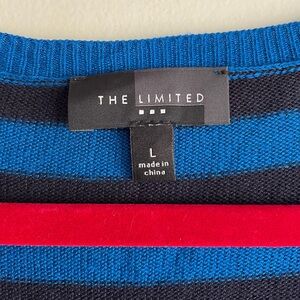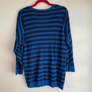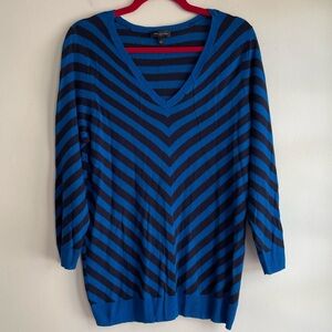 Blue and black chevron striped V neck sweater from The Limited. Not too heavy, not too thin. Look great with black leggings!