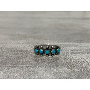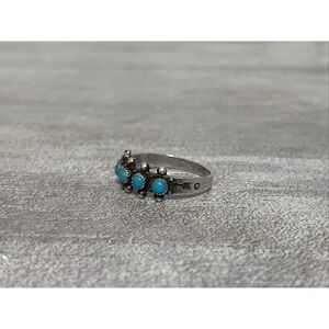 Native American Zuni Turquoise Petit Point Ring Sz 8 Snake Eyes Arrow