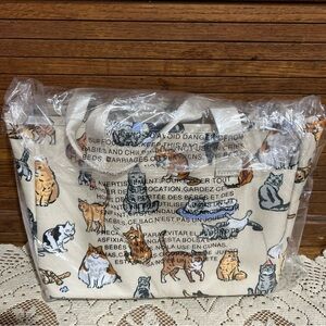 Stylish tote with adorable cat illustrations. Features durable handles and roomy interior.