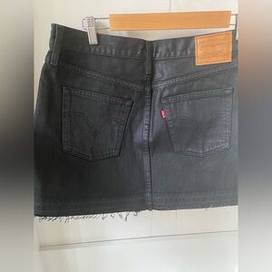 Stylish black denim mini skirt with frayed hem. Perfect for casual outings.