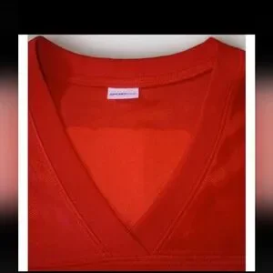 Dynamic red sports jersey for women featuring a bold number design. Ideal for active play and sports events made by Sport-Tek