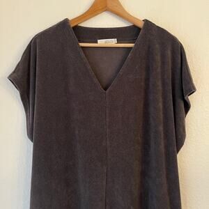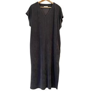 Barefoot Dreams CozyTerry Caftan Dress Gray S Oversized Coverup Beach Pool Midi Resort Summer