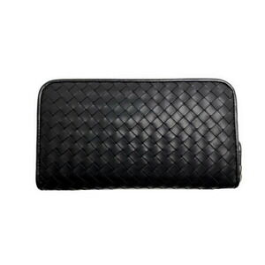 Bottega Veneta Wallet Round Zip Long Intrecciato Leather Black Includes a Certificate of Authentication!