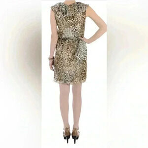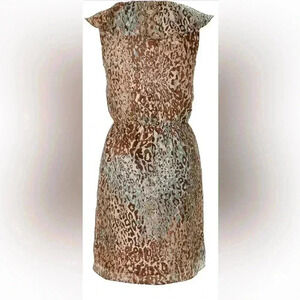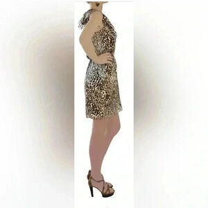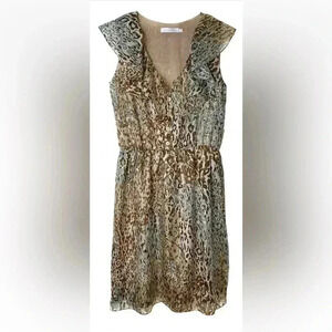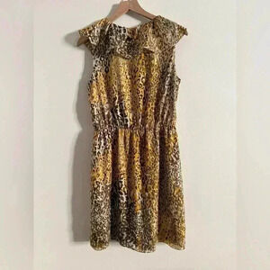 CARLOS MIELE Beige Yellow Gold Leopard Print Ruffle Detail Mini Dress Size XS