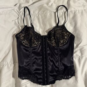 NWT SHEIN BAE Contrast Lace Hook Front Cami Top BLACK SIZE XS