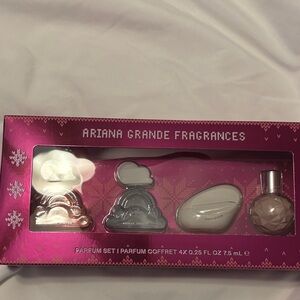 Experience the captivating aromas of Ariana Grande's fragrance collection. Includes charming pink, white, and silver bottles. Brand new never used.