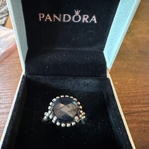 GENUINE PANDORA STERLING MIDNIGHT BLUE CRYSTAL RING- 190910NBC- SIZE 8