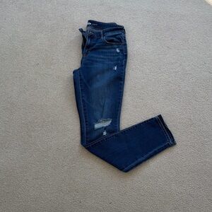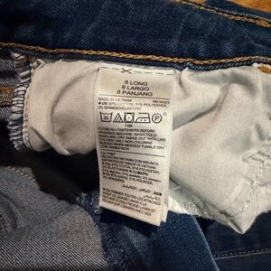 Old Navy size 8 Long dark blue straight jeans with stylish distressing.