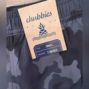 NWT Chubbies Men’s The Camo Glows 7” Performance Shorts in Black/Grey Camo in S