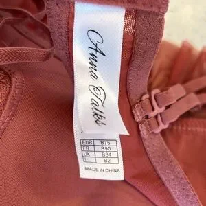 Turn heads with this stunning rust-colored bralette, featuring intricate floral lace embroidery, pleated mesh cups, and a satin bow accent. Delicate ruffle trim along the band adds a flirty, feminine touch. padded with underwire for support. New without tags and never worn. Perfect for layering or lounging in style.
