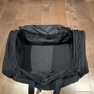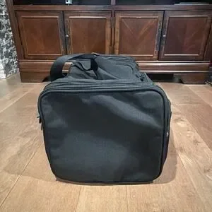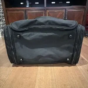 Briggs & Riley Travelware carry‑on duffle bag in black, pre‑owned and used. Approx. 22 x 13 size. Classic durable travel design with multiple compartments, reinforced handles, and zip closures. Exterior shows normal cosmetic wear from regular travel use. Shoulder strap is not included. All pockets, zippers, and handles as shown in photos. You receive exactly what appears in the photos.
