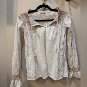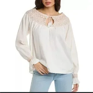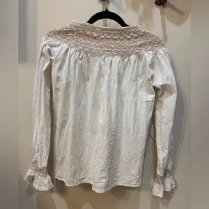 Faherty Womens Laura Embroidered Peasant Top Puffy Small Blouse White Organic