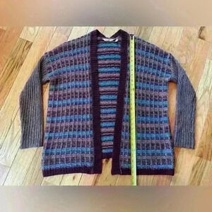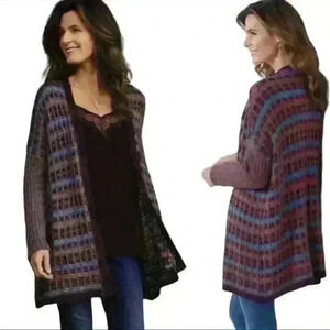 Soft Surroundings Eirene multicolored plaid chunky knit cardigan sweater, women’s size S/M. Wool Blend. EUC, no flaws. Please see photos for item details/dimensions. Some photos may appear different in color due to lighting. Ships from smoke-free home.