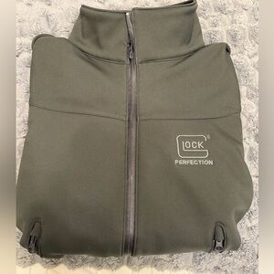 Sleek gray softshell jacket. Features GLOCK logo on the chest.