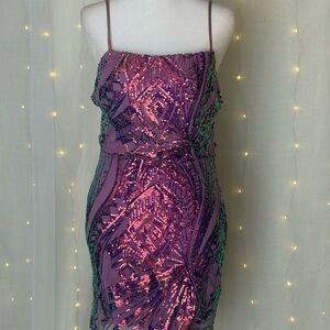 Francesca's Collections Strapless Sequin Dress - Purple and Green