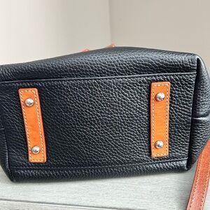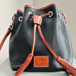 Dooney & Bourke Black Pebbled Leather Bucket Bag | British Tan Trim. EUC