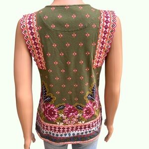 Anthropologie Green and Red Sleeveless Embroidered Tank