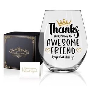 Thanks For Being An Awesome Friend Keep That Up Wine Glass with Gift Box NEW