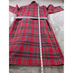The Vermont Country Store mens Double Comfort heavyweight Portuguese flannel robe featuring a colorful plaid pattern in red, blue, black, white, yellow, and green with soft gray interior lining. Designed with a relaxed fit and adjustable belt closure, this premium flannel robe offers exceptional warmth and comfort for lounging or cold mornings. Feels and appears new without tags, showing no signs of wear. A high-quality cozy robe perfect for winter comfort and everyday home use.