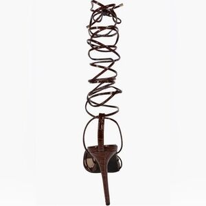 NEW Azalea Wang Gladiator Wrap Leg Heeled Sandals Open Toe Croc Brown sz 8.5