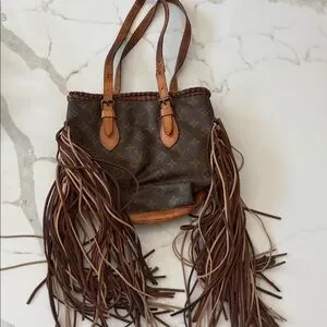 Elegant Boho Vintage Louis Vuitton shoulder bag with fringe accents added. Iconic monogram design. Perfect for chic style. See pictures for wear and tear. Perfect bag for Nashville