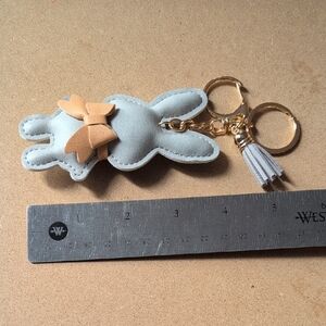 Charming Gray Bunny Keychain with Tan Bow