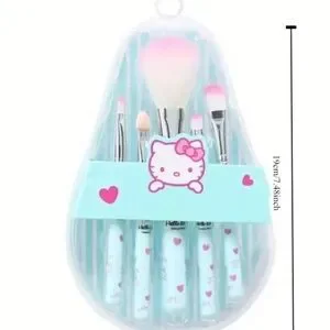 Adorable Hello Kitty makeup brush set in pink. Perfect for adding a cute touch to your beauty routine.