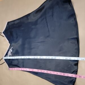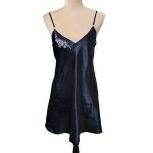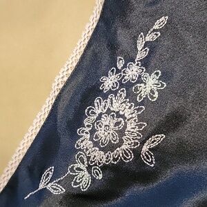 Jones New York Size M Black Satin Slip Dress with Embroidered Design, Like New