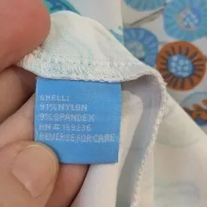 This dress is a mix of blues and greens and features Catalina Cloth (91% Nylon, 9% Spandex) for comfort and style.