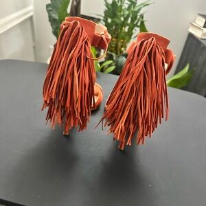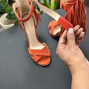 Nine West Hustle Fringe Suede High-Heel Sandals Orange