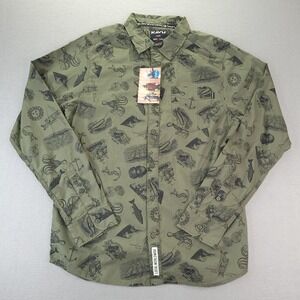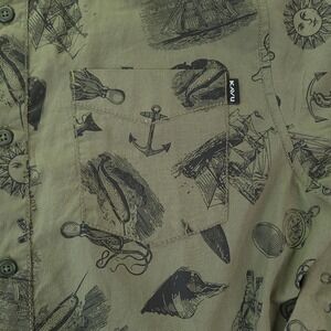 Kavu Shirt Men Small Olive Green Nautical Hootenanny All Over Print Kraken Diver