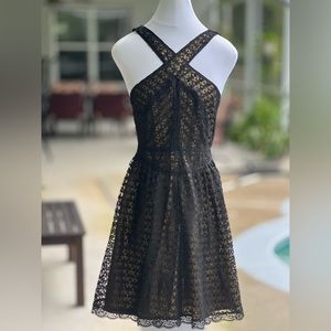 Victoria's Secret Moda International Black Gold Lace Mini Dress Size 8 New